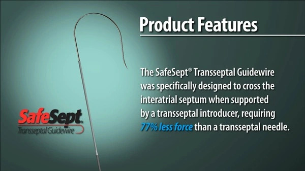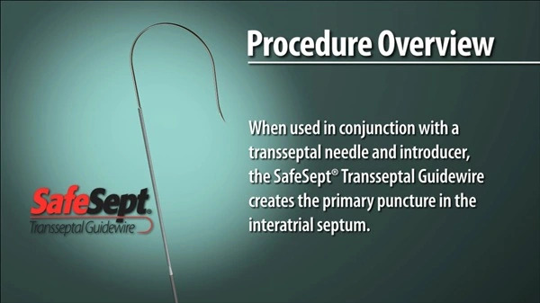 Il filo guida transattale SafeSept™ si usa congiuntamente ad un ago transettale per effettuare la perforazione primaria del setto interatriale e per guidare l’ago, il dilatatore e la sonda attraverso il setto, dal lato destro al sinistro del cuore.